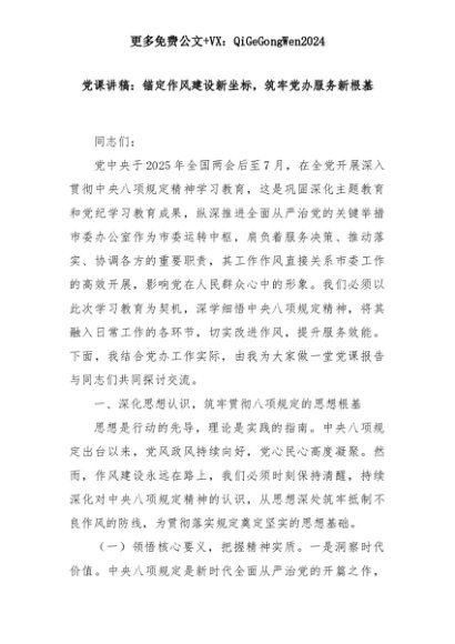 【七哥公文】2025年:党课讲稿:锚定作风建设新坐标,筑牢党办服务新根基+更多免费公文+VX:QiGeGongWen2024+更多免费公文+VX:QiGeGongWen2024