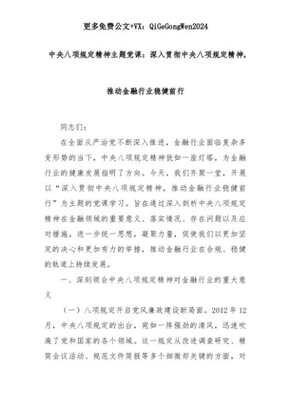 【七哥公文】2025年:中央八项规定精神主题党课:深入贯彻中央八项规定精神,推动金融行业稳健前行+更多免费公文+VX:QiGeGongWen2024+更多免费公文+VX:QiGeGongWen2024
