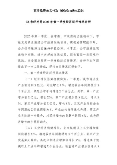 【七哥公文】2025年:XX市经发局2025年第一季度经济运行情况分析+更多免费公文+VX:QiGeGongWen2024+更多免费公文+VX:QiGeGongWen2024