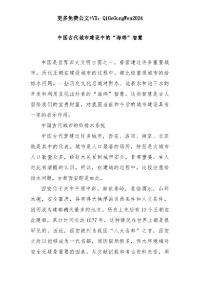 【七哥公文】2025年:中国古代城市建设中的“海绵”智慧+更多免费公文+VX:QiGeGongWen2024+更多免费公文+VX:QiGeGongWen2024