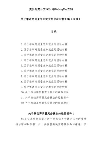 【七哥公文】2025年:(12篇)关于推动高质量充分就业的经验材料汇编+更多免费公文+VX:QiGeGongWen2024+更多免费公文+VX:QiGeGongWen2024
