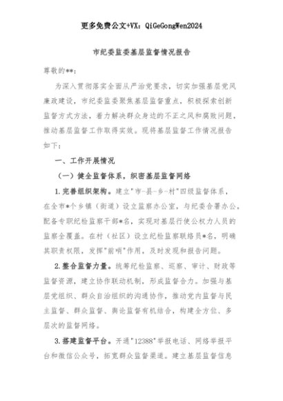 【七哥公文】2025年:市纪委监委基层监督情况报告+更多免费公文+VX:QiGeGongWen2024+更多免费公文+VX:QiGeGongWen2024