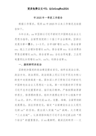 【七哥公文】2025年:市2025年一季度工作报告+更多免费公文+VX:QiGeGongWen2024+更多免费公文+VX:QiGeGongWen2024