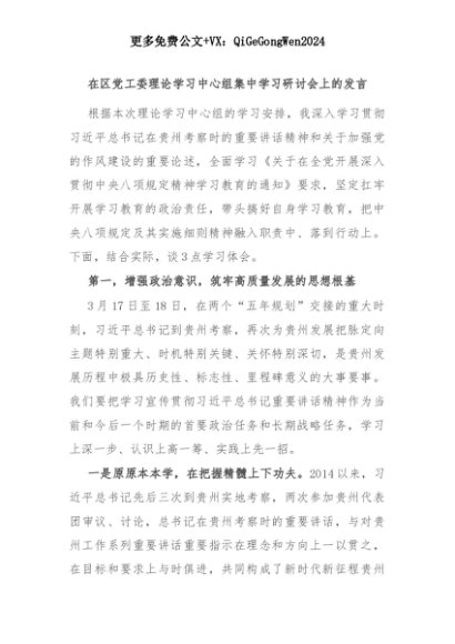 【七哥公文】2025年:在区党工委理论学习中心组集中学习研讨会上的发言+更多免费公文+VX:QiGeGongWen2024+更多免费公文+VX:QiGeGongWen2024