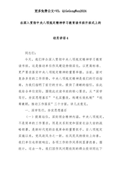 【七哥公文】2025年:在深入贯彻中央八项规定精神学习教育读书班开班式上的动员讲话4+更多免费公文+VX:QiGeGongWen2024+更多免费公文+VX:QiGeGongWen2024