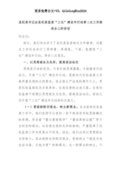 【七哥公文】2025年:县纪委书记在县纪委监委“三化”建设年行动第1次工作推进会上的讲话+更多免费公文+VX:QiGeGongWen2024+更多免费公文+VX:QiGeGongWen2024