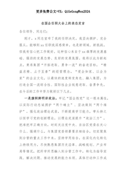 【七哥公文】2025年:在国企任职大会上的表态发言+更多免费公文+VX:QiGeGongWen2024+更多免费公文+VX:QiGeGongWen2024