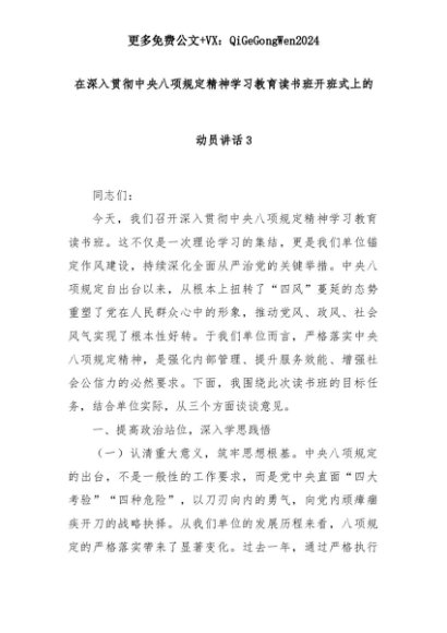 【七哥公文】2025年:在深入贯彻中央八项规定精神学习教育读书班开班式上的动员讲话3+更多免费公文+VX:QiGeGongWen2024+更多免费公文+VX:QiGeGongWen2024