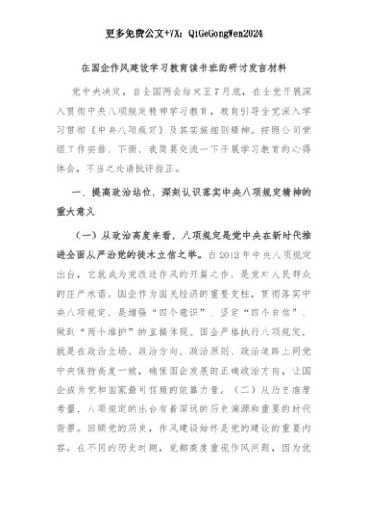 【七哥公文】2025年:在国企作风建设学习教育读书班的研讨发言材料+更多免费公文+VX:QiGeGongWen2024+更多免费公文+VX:QiGeGongWen2024