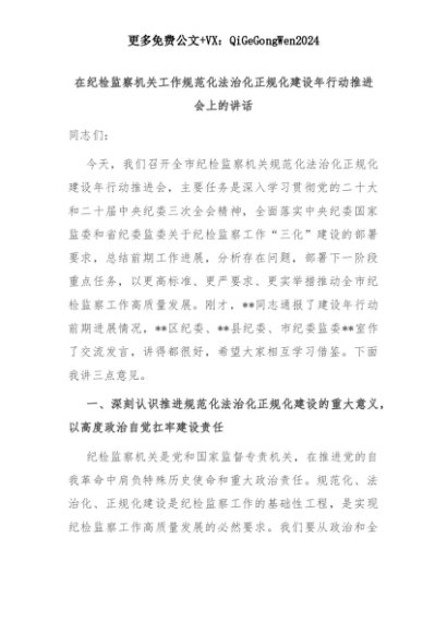 【七哥公文】2025年:在纪检监察机关工作规范化法治化正规化建设年行动推进会上的讲话+更多免费公文+VX:QiGeGongWen2024+更多免费公文+VX:QiGeGongWen2024