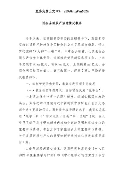 【七哥公文】2025年:国企全面从严治党情况报告+更多免费公文+VX:QiGeGongWen2024+更多免费公文+VX:QiGeGongWen2024