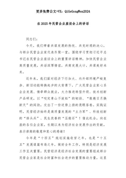 【七哥公文】2025年:在2025年民营企业座谈会上的讲话+更多免费公文+VX:QiGeGongWen2024+更多免费公文+VX:QiGeGongWen2024
