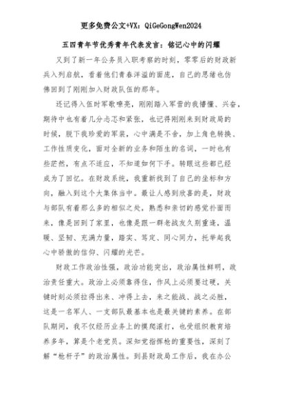 【七哥公文】2025年:五四青年节优秀青年代表发言:铭记心中的闪耀+更多免费公文+VX:QiGeGongWen2024+更多免费公文+VX:QiGeGongWen2024