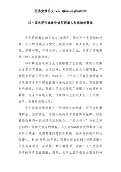 【七哥公文】2025年:以中国式现代化建设谱写西藏人权保障新篇章+更多免费公文+VX:QiGeGongWen2024+更多免费公文+VX:QiGeGongWen2024