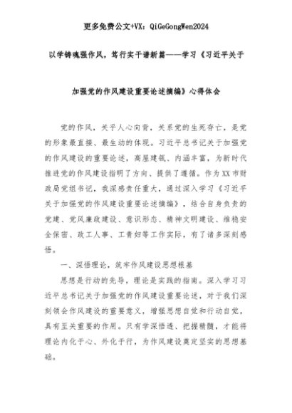 【七哥公文】2025年:以学铸魂强作风,笃行实干谱新篇——学习《总书记关于加强党的作风建设重要论述摘编》心得体会+更多免费公文+VX:QiGeGongWen2024+更多免费公文+VX:QiGeGongWen2024
