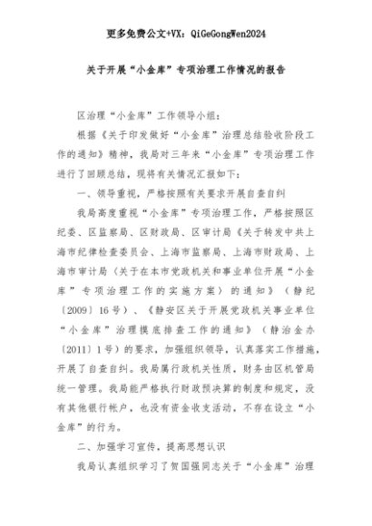 【七哥公文】2025年:关于开展“小金库”专项治理工作情况的报告+更多免费公文+VX:QiGeGongWen2024+更多免费公文+VX:QiGeGongWen2024