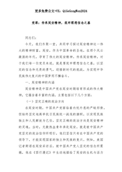 【七哥公文】2025年:党课:传承延安精神,筑牢理想信念之基+更多免费公文+VX:QiGeGongWen2024+更多免费公文+VX:QiGeGongWen2024