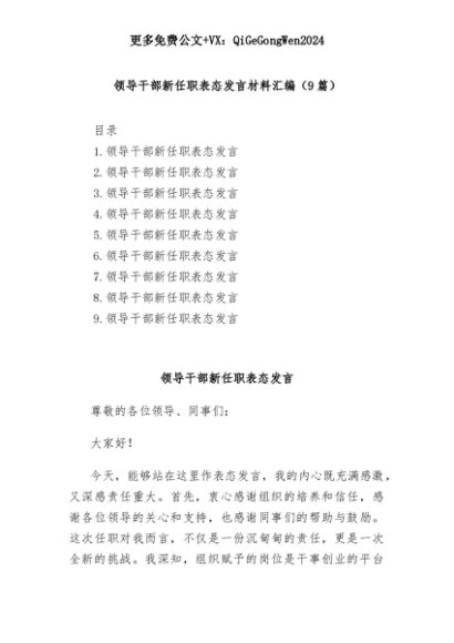 【七哥公文】2025年:(9篇)领导干部新任职表态发言材料汇编+更多免费公文+VX:QiGeGongWen2024+更多免费公文+VX:QiGeGongWen2024