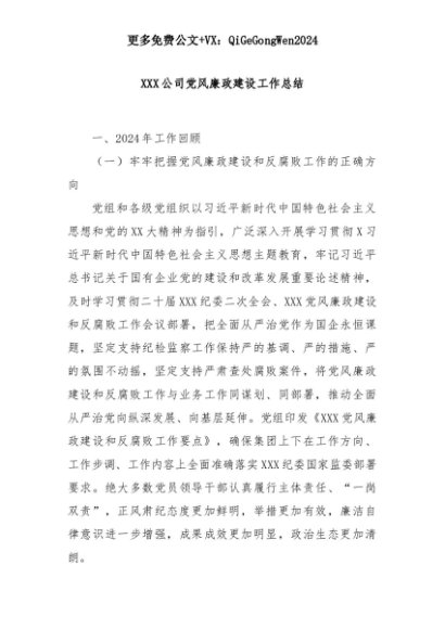 【七哥公文】2025年:XXX公司党风廉政建设工作总结+更多免费公文+VX:QiGeGongWen2024+更多免费公文+VX:QiGeGongWen2024