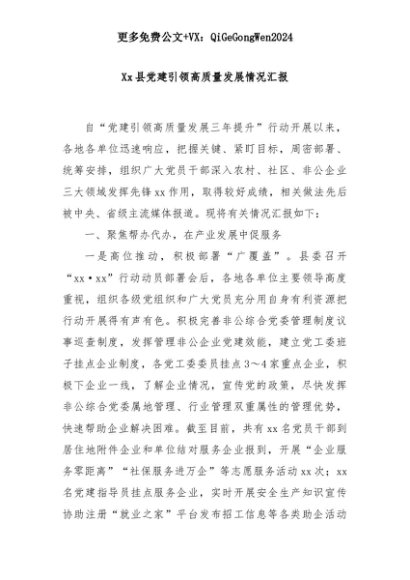 【七哥公文】2025年:Xx县党建引领高质量发展情况汇报+更多免费公文+VX:QiGeGongWen2024+更多免费公文+VX:QiGeGongWen2024