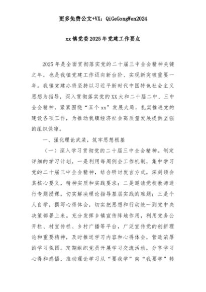 【七哥公文】2025年:xx镇党委2025年党建工作要点+更多免费公文+VX:QiGeGongWen2024+更多免费公文+VX:QiGeGongWen2024