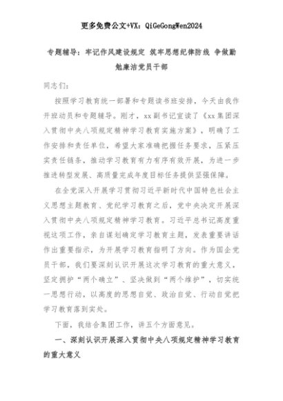 【七哥公文】2025年:专题辅导:牢记作风建设规定 筑牢思想纪律防线 争做勤勉廉洁党员干部+更多免费公文+VX:QiGeGongWen2024+更多免费公文+VX:QiGeGongWen2024