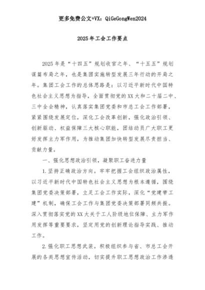 【七哥公文】2025年:2025年工会工作要点+更多免费公文+VX:QiGeGongWen2024+更多免费公文+VX:QiGeGongWen2024