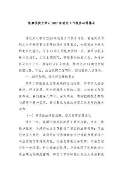 【七哥公文】2025年:检察院院长学习2025年政府工作报告心得体会+更多免费公文+VX:QiGeGongWen2024