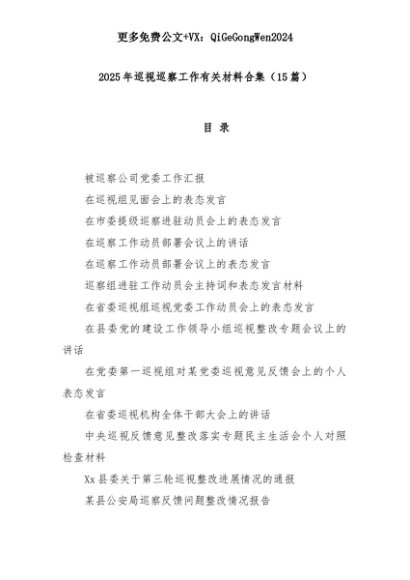 【七哥公文】2025年:(15篇)2025年巡视巡察工作有关材料合集+更多免费公文+VX:QiGeGongWen2024+更多免费公文+VX:QiGeGongWen2024