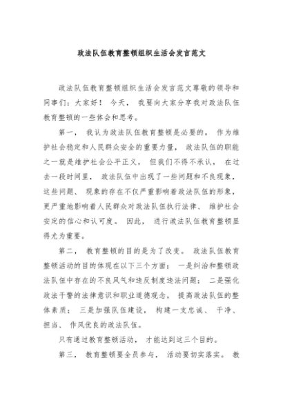/ 【七哥公文】2025年:政法队伍教育整顿组织生活会发言范文+更多免费公文+VX:QiGeGongWen2024