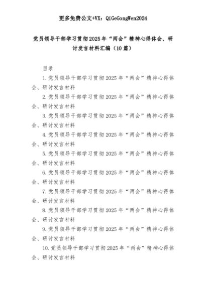【七哥公文】2025年:(10篇)党员领导干部学习贯彻2025年“两会”精神心得体会、研讨发言材料汇编+更多免费公文+VX:QiGeGongWen2024+更多免费公文+VX:QiGeGongWen2024
