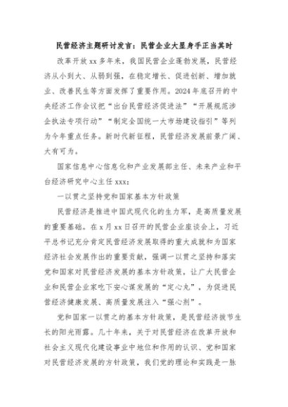/ 【七哥公文】2025年:民营经济主题研讨发言:民营企业大显身手正当其时+更多免费公文+VX:QiGeGongWen2024
