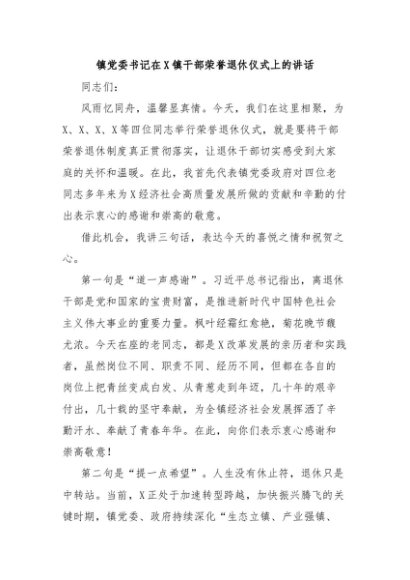 / 【七哥公文】2025年:镇党委书记在X镇干部荣誉退休仪式上的讲话+更多免费公文+VX:QiGeGongWen2024