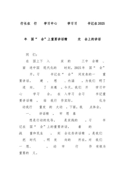 【七哥公文】2025年:行长在银行理论学习中心组专题学习习近平总书记在2025年全国“两会”上重要讲话精神研讨交流会上的讲话+更多免费公文+VX:QiGeGongWen2024