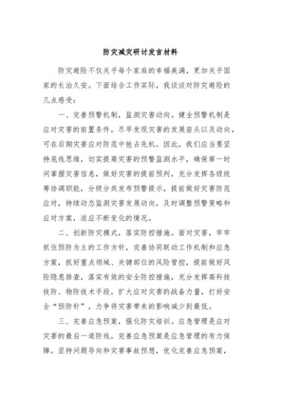 【七哥公文】2025年:防灾减灾研讨发言材料+更多免费公文+VX:QiGeGongWen2024