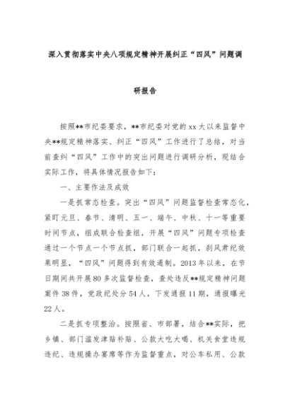 【七哥公文】2025年:深入贯彻落实中央八项规定精神开展纠正“四风”问题调研报告+更多免费公文+VX:QiGeGongWen2024