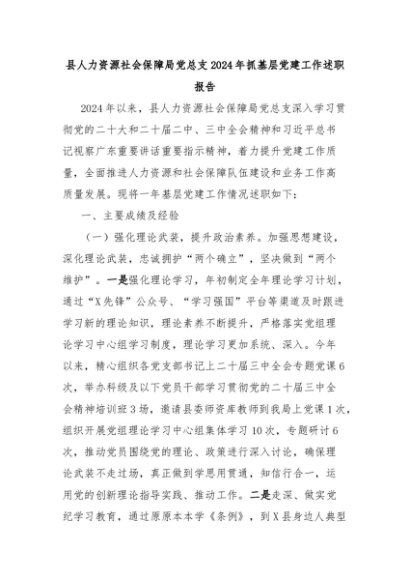 【七哥公文】2025年:县人力资源社会保障局党总支2024年抓基层党建工作述职报告+更多免费公文+VX:QiGeGongWen2024