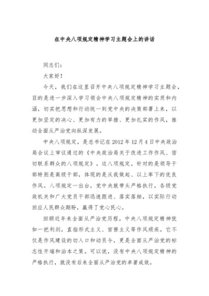 / 【七哥公文】2025年:在中央八项规定精神学习主题会上的讲话+更多免费公文+VX:QiGeGongWen2024