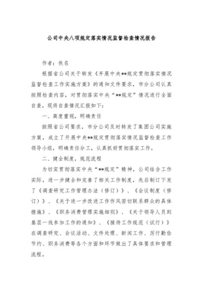 / 【七哥公文】2025年:公司中央八项规定落实情况监督检查情况报告+更多免费公文+VX:QiGeGongWen2024