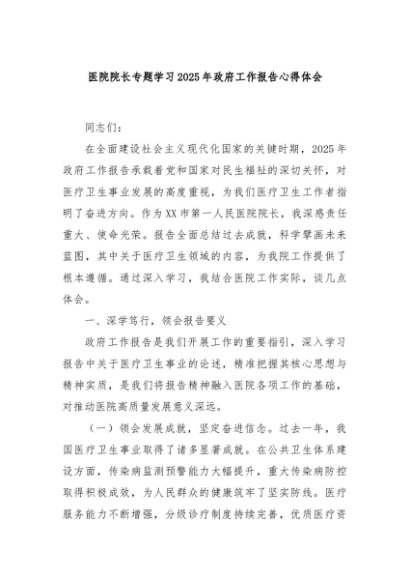 / 【七哥公文】2025年:医院院长专题学习2025年政府工作报告心得体会+更多免费公文+VX:QiGeGongWen2024