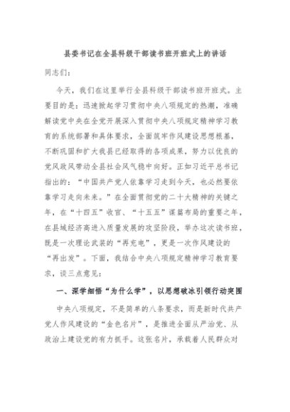 / 【七哥公文】2025年:县委书记在全县科级干部读书班开班式上的讲话+更多免费公文+VX:QiGeGongWen2024