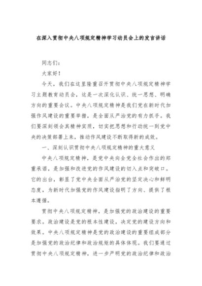 / 【七哥公文】2025年:在深入贯彻中央八项规定精神学习动员会上的发言讲话+更多免费公文+VX:QiGeGongWen2024