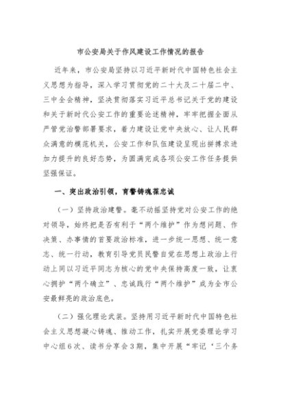 / 【七哥公文】2025年:市公安局关于作风建设工作情况的报告+更多免费公文+VX:QiGeGongWen2024