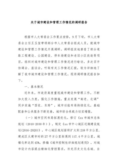 【七哥公文】2025年:关于城市建设和管理工作情况的调研报告+更多免费公文+VX:QiGeGongWen2024