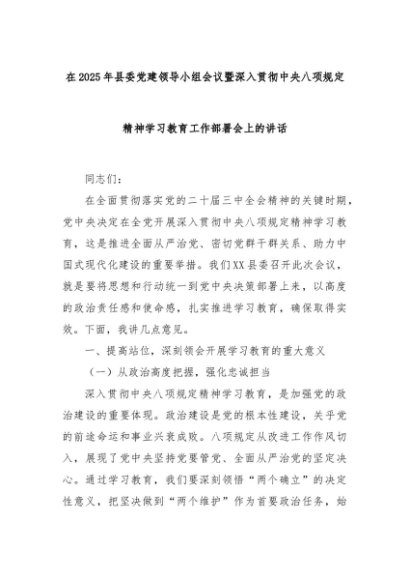 【七哥公文】2025年:在2025年县委党建领导小组会议暨深入贯彻中央八项规定精神学习教育工作部署会上的讲话+更多免费公文+VX:QiGeGongWen2024