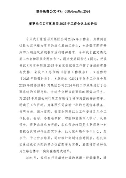 【七哥公文】2025年:董事长在X市政集团2025年工作会议上的讲话+更多免费公文+VX:QiGeGongWen2024+更多免费公文+VX:QiGeGongWen2024