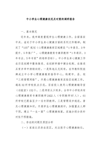 【七哥公文】2025年:中小学生心理健康状况及对策的调研报告+更多免费公文+VX:QiGeGongWen2024