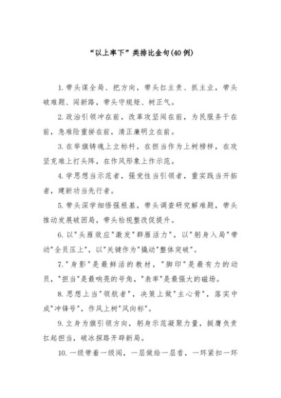 【七哥公文】2025年:(40例)“以上率下”类排比金句+更多免费公文+VX:QiGeGongWen2024