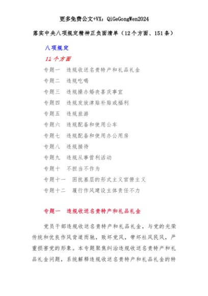 【七哥公文】2025年:落实中央八项规定精神正负面清单(12个方面、151条)+更多免费公文+VX:QiGeGongWen2024+更多免费公文+VX:QiGeGongWen2024