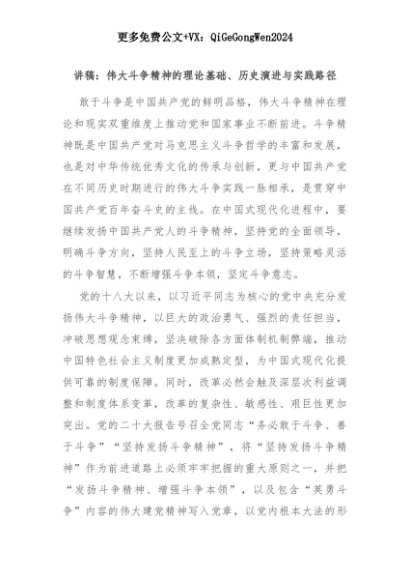 【七哥公文】2025年:讲稿:伟大斗争精神的理论基础、历史演进与实践路径+更多免费公文+VX:QiGeGongWen2024+更多免费公文+VX:QiGeGongWen2024